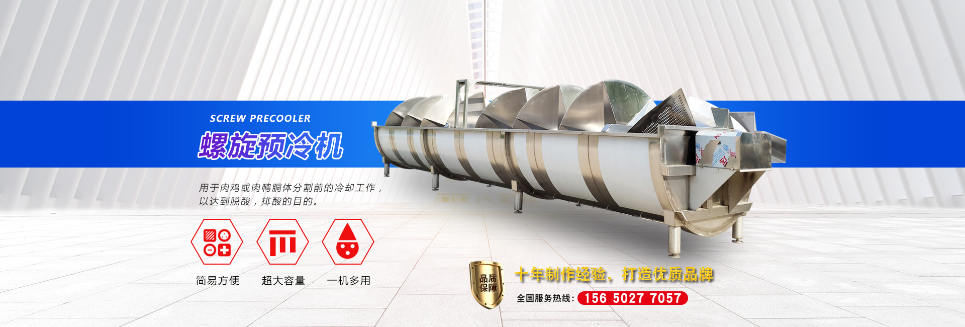 公司長期與國內(nèi)外屠宰加工企業(yè)合作,走引進(jìn)——消化——?jiǎng)?chuàng)新和自主研發(fā)相結(jié)合的道路,在國內(nèi)外同類產(chǎn)品的基礎(chǔ)上,不斷更新和改造。公司主要設(shè)備有:A字型立式脫毛機(jī)、臥式脫毛機(jī)、強(qiáng)力噴淋機(jī)、松毛機(jī)、浸燙池、螺旋預(yù)冷機(jī)、禽籠清洗機(jī)、電暈機(jī)、兔扯皮機(jī)、兔割前爪/后爪機(jī)、剝胗機(jī)、自動(dòng)洗鉤機(jī)、螺旋燙爪機(jī)、雞爪脫皮機(jī)、分割輸送帶等屠宰用設(shè)備。其中,公司獨(dú)力發(fā)明生產(chǎn)設(shè)計(jì)的“電動(dòng)調(diào)節(jié)脫毛機(jī)”及“自動(dòng)控水控溫浸燙池”順利通過知識產(chǎn)權(quán)局的實(shí)質(zhì)性審查。公司所生產(chǎn)的設(shè)備 可與國外同類產(chǎn)品配套使用,設(shè)備遠(yuǎn)銷阿爾及利亞、澳大利亞等中東、非州等并建立了長期穩(wěn)定的合作關(guān)系。